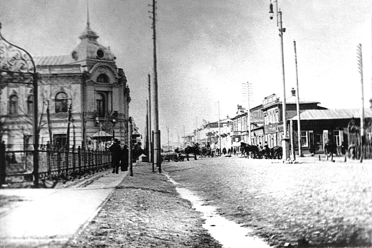 СТАРОЕ ФОТО ЛЮБИМОГО Тамбова . Историческая часть города Тамбова улица Коммунальная выглядела особенным образом. Когда-то как только построили гимназию она улицу стали называть Гимназической но ранее это была дорога на Пензу которая проходила через весь исторический центр города. Мимо моего дома и Базарной ( Сенной) площади Обратите внимание как построена дорожное полотно с левой стороны вы увидите канаву для водоотведения лишней воды. Пензенская дорога была уложена плотно прилегающем камнем (булыжником) сделана полусферой для быстрого слива в дождевые канавы, постоянно модернизировалась и перекладывалась во время просадки. Интересно была построена, под булыжником уложен толстый слой глины для того чтобы вода не проникала вовнутрь, это была своего рода герметичная прослойка, водоотталкивающая преграда которая позволяла держать в сухости нижние помещения подземных этажей. Сам сквер господина Шоршорова М. на месте бывшей территории прежнего крепостного рва был огорожен кованым фигу