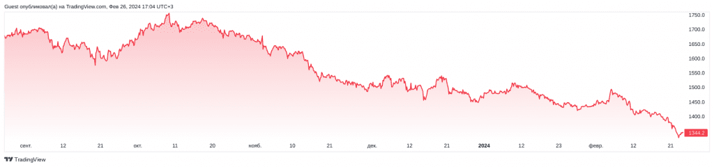 Новатэк ниже 1400 был интересен при ставке ЦБ в 7,5%. Компания роста с дивидендной доходностью на уровне ставки ЦБ, это хорошая инвестиция. Но дивидендная доходность в 7,5% при ставке ЦБ в 16% не впечатляет.