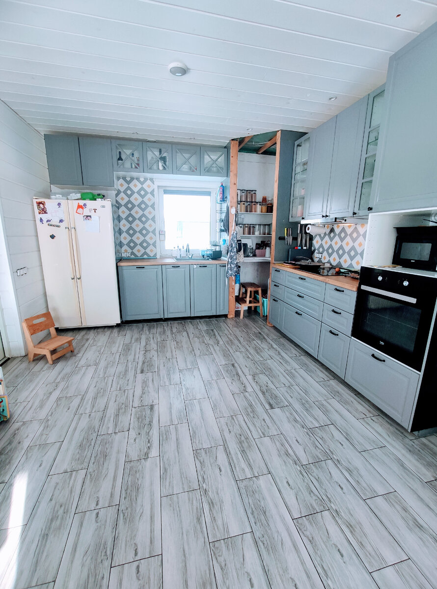 Также тут стоит ступенька. С моим ростом — это must've. Да и дочка ее теперь постоянно гоняет по кухне. С диким скрежетом 🤣