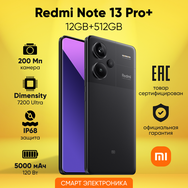 Redmi Note 13 Pro+ 5G 12GB+512GB Black - новый флагманский смартфон от китайского производителя Xiaomi, который удивляет не только мощными характеристиками, но и стильным дизайном. Этот аппарат предлагает потрясающие возможности, которые обязательно порадуют даже самых требовательных пользователей.