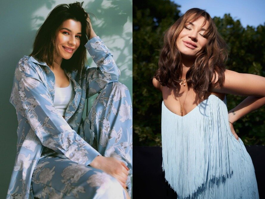 На этом снимке фотограф запечатлел классные эмоции Юлии Ковальчук. Как считаешь, ей подходит рубашка небесно-голубого оттенка? Думаем, ещё как! Если бы Юлия не закрыла глаза на фото, ты убедился бы, как их цвет отлично сочетается с выбранным образом.