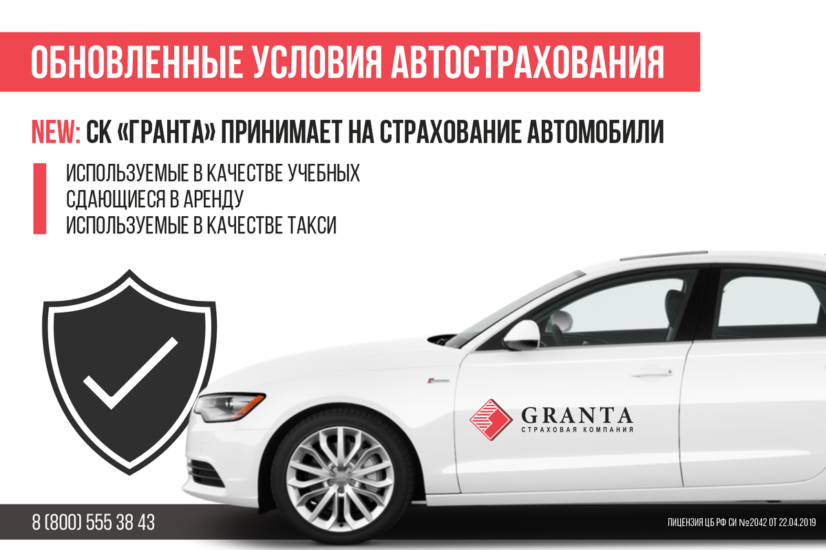 Мы расширили список принимаемых на страхование автомобилей в связи с большим наплывом запросов – рынок услуг, предоставляемых данными видами транспорта, активно растет и требует поддержки и финансовой защиты – поэтому мы рады сообщить вам, что теперь мы можем быть полезными еще большему количеству клиентов: водителям такси, автоинструкторам, владельцам автопарков и др.!
