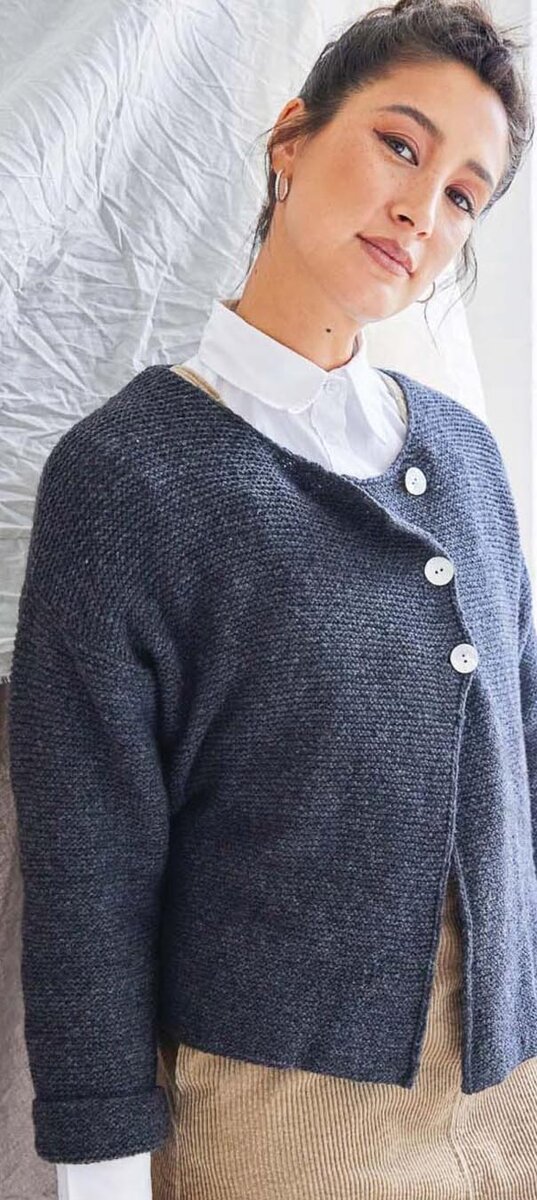 Прямой силуэт, рукава 3/4, ажурный узор плюс высоко-качественная пряжа из шерсти мериноса и хлопка - так выглядит идеальное дополнение к вашему гардеробу. Эта модель отлично сочетается с с контрастными блузками и водолазками, которые будут просвечивать сквозь тонкое полотно. Также её можно носить и поверх бюстье или топа.