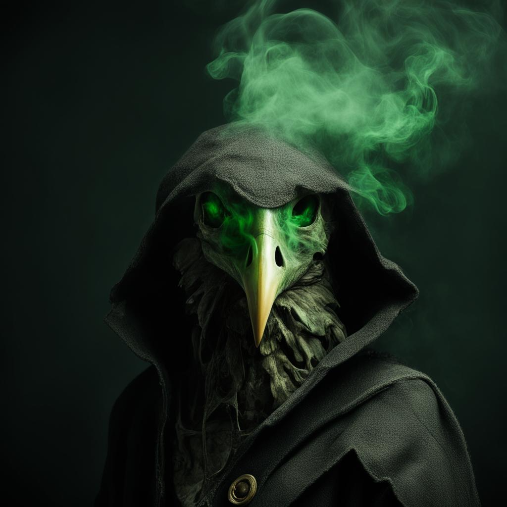 Вдруг появилось страшное существо, главный дирижёр этого безумного спектакля. Огромный рост, под два метра, черный кожаный плащ и лицо... если это можно было так назвать. Голый череп с птичьим клювом и зелёными глазами, светящимися потусторонним дымным светом. Лиза отдала бы что угодно, лишь бы не быть тут, но... ей приходилось следить за этим существом, хищно открывающим, полный острых зубов, клюв.
