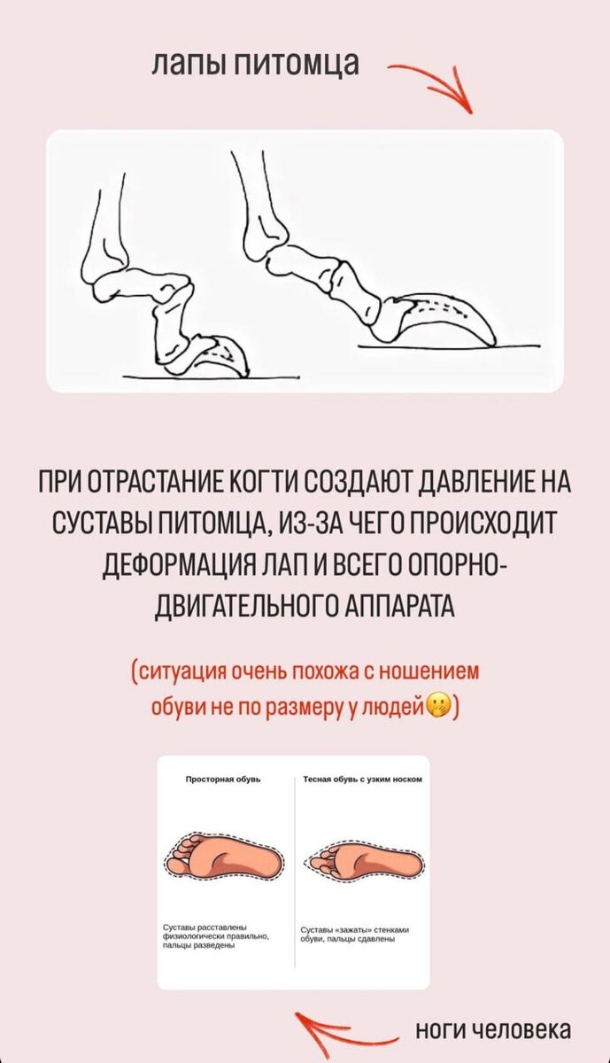 Более длинные когти, чем нужно, не только доставляют животному дискомфорт, но и провоцируют болезни опорно-двигательного аппарата, повышают риск получения травм.