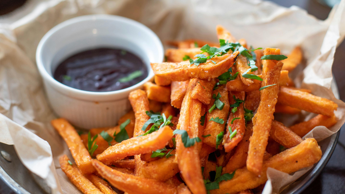 Недавно прошёл День приготовления сладкого картофеля. Если вы хотите попробовать что-то новое и полезное, забирайте рецепт ниже. Что такое батат и чем он полезен Батат — корнеплод, внешне похожий на картофель, только оранжевый и вытянутый. На вкус батат сладкий и напоминает что-то между картофелем и тыквой. Вот несколько полезных свойств батата: Приготовление в духовке Запечённый гарнир будет отличным дополнением к обеду или ужину. Для приготовления вам понадобится: Переходим к готовке! Всего полчаса, и гарнир у вас на столе: 1. Помойте батат и нарежьте его на дольки 2. В глубокой посуде смешайте дольки, оливковое масло и специи, тщательно перемешайте 3. Застелите противень пергаментом и распределите батат в один слой 4. Разогрейте духовку до 200°С и отправьте батат запекаться на 25-30 минут 5. Когда появится золотистая корочка, можете доставать гарнир! Духовой шкаф, с которым всё будет под контролем Чтобы ваше блюдо не сгорело и при этом не осталось полусырым, воспользуйтесь духовым