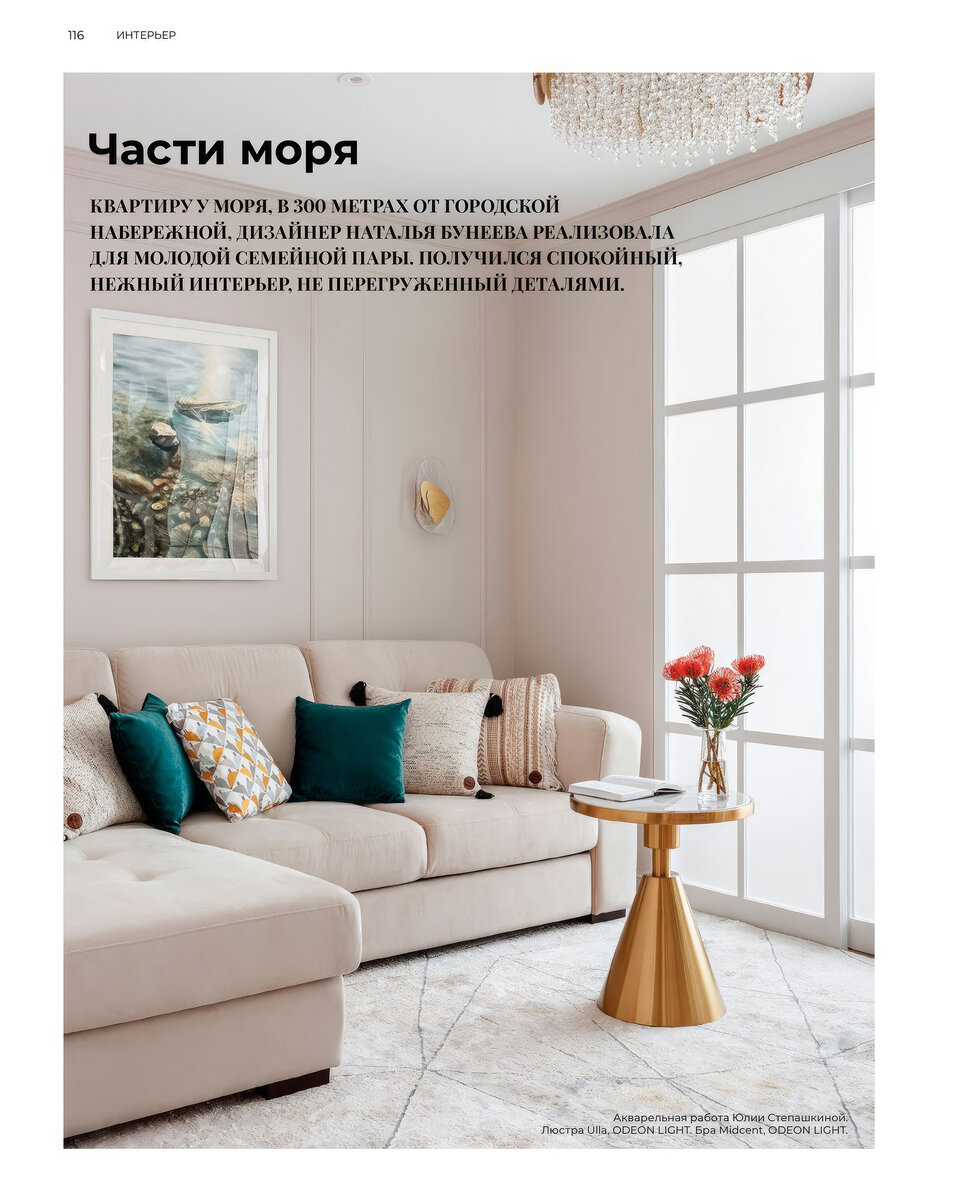Дизайнер: Наталья БунееваСтилист: Наталья ЯкушеваРеализация: Азиз РустамовФотограф: Сергей ДенисенкоЖурнал: IN home Magazine Краснодар