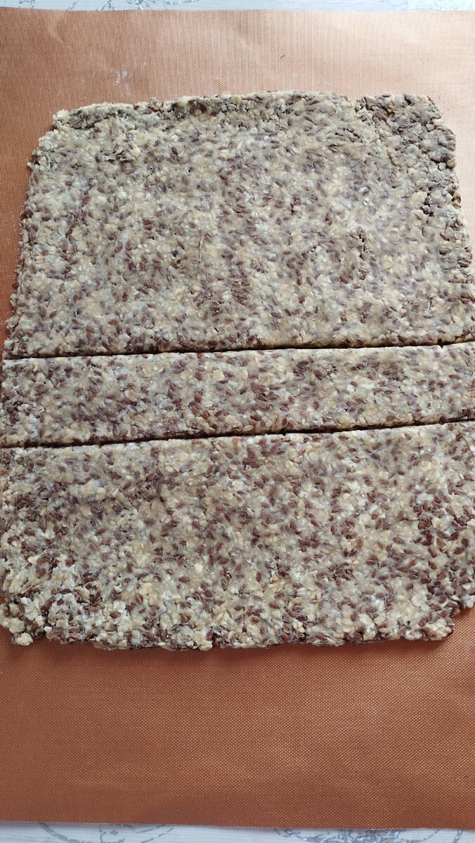 Считаю,что хлебцы лучше приготовить самим,чем покупать. Сама решаешь из чего полезного их сделать. А уж,из чего их сделать,список ингредиентов,просто,велик. Сегодня исходила из того,что мне захотелось хлебцев соленых. Для них взяла овсяные хлопья,соевую муку,семя льна,кунжут и для пущей полезности клетчатку. Набор минимальный,но сколько пользы. Тесто замешивается на раз,все ингредиенты кладу в миску,добавляю горячую воду и замешиваю. Тесто ровным слоем распределяю на тефлонофом листе. Делаю насечки, что бы потом легко порезать на кусочки После выпечки их легко разрезаю кухонными ножницами по этим бороздкам. Вот такие хлебцы получаются. Расклад такой Каждый кусочек получился примерно на 14гр. Вкусные,в меру хрустящие и полезные. Хлебцы содержат медленные углеводы,полезную клетчатку. Продукт очень популярный. Пока. Всем Мира и Добра!