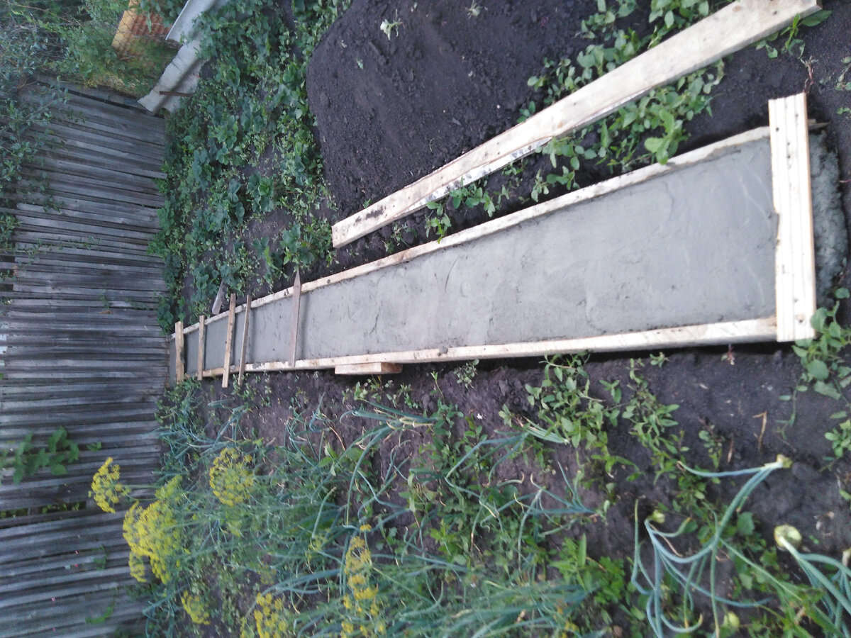 Утро началось с дождя, что уже было плохим знаком, что что-то должно пойти не так. Как оказалось дальше дождь лил часов до 16:00. От поставки бетона отказываться было поздно, взят выходной на пятницу, на работе у всех для этого действия. И вот настало время х 9:00. Первая машина заезжает в дачный кооператив, я ее встречаю и провожаю до участка, здесь пока все хорошо и не предвещает беды. Выносной желоб всего на 3 метра, наш составной поставлен в самый дальний угол, мы их стыкуем и начинается подача бетона. Он не торопясь стекает в угол опалубки и мы с братом его подгоняем быстрее тяпками и параллельно папа вибрирует его для лучшего растекания, все это время идет дождь мы мокрые и уставшие.