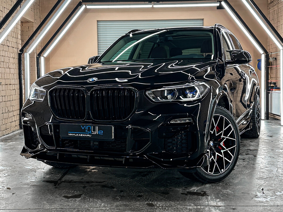 BMW X5 в установленном нами М обвесе смотрится нереально дерзко! Предварительно бампера были покрашены в чёрный глянец.