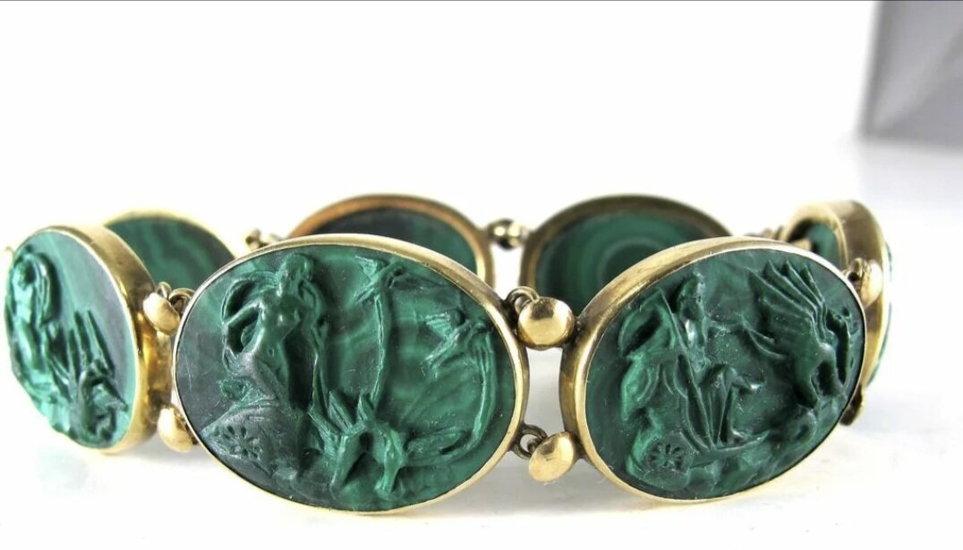 Первые сведения об использовании малахита как поделочного камня относятся аж к неолиту. В могильнике Шандиор в Ираке найдены изделия с малахитом которые были созданы в 10500 г. до н.э. В древнем Египте малахит был известен за 3000 лет до н.э., а в Греции и Риме из малахита делали амулеты, печати бусы, камеи, а так же краску. На средневековом Востоке лучшим считался Иранский малахит, имеются сведения о разработке малахита в Китае в VII в. В Европе в связи с расцветом рудного дела в XV-XVI вв малахит добывался в Богемии, Венгрии, Болгарии, Италии. А в Индии малахит можно увидеть в отделке знаменитого мавзолея Тадж-Махал. Но сегодня мне хочется поговорить именно о Русском малахите. На Руси он добывался на Урале, первая зарегистрированная находка малахитовой руды относится к 1645 году. Первыми изделиями из него были пуговицы для парадных камзолов. А в эпоху активной добычи малахита, масштабы были так велики, что стоимость Уральского малахита снижалась и его продавали чуть дороже щ