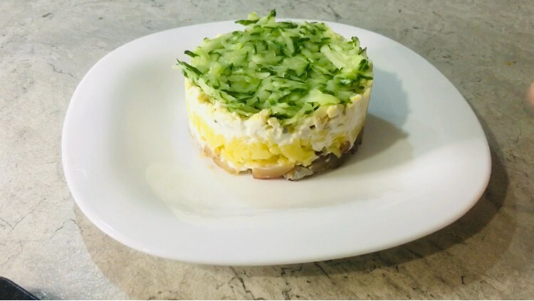 "Скумбрия под шубой" - вкусный слоеный салат с пикантной копченой ноткой
