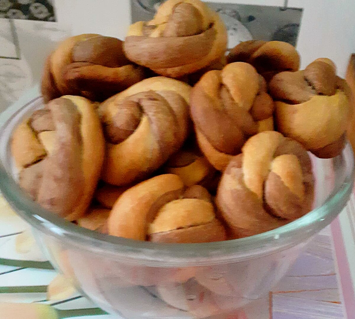Приветствую всех на своём канале! Сегодня хочу поделиться с вами давно забытым рецептом печенья. В моём детстве мама часто готовила это простое, но очень вкусное и всеми любимое печенье. Вот и сейчас я решила вспомнить рецепт из детства и поделиться им с вами. Это печенье, из двух видов песочного теста, по форме напоминает розы, поэтому выглядит очень празднично. Всем, кто любит простую и оригинальную выпечку, я рекомендую взять данный рецепт печенья на заметку. Ну что же, приступим. Ингредиенты: 1. Яйцо - 1шт. 2. Масло растительное - 50 мл. 3. Молоко - 80 мл. 4. Сахар - 100 гр. 5. Разрыхлитель - 1 пакетик 6. Мука - 230 гр. 7. Ванилин - 1 пакетик Способ приготовления: Подготовить все ингредиенты. В миске смешать яйцо и сахар, добавит масло и молоко и всё хорошо перемешать. Добавить разрыхлитель и ванилин. Затем ввести муку, оставив 1 ст.л. и вымесить тесто. Тесто разделить на две равные части, в одну половинку добавит какао, во вторую оставшуюся муку( 1ст.