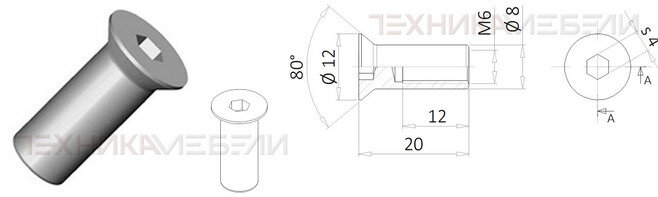 571 А0 • Гайка Эриксона М6 (Ø 8 мм) потайная головка Ø12 мм, вн/ш №4 Фоторгафии позиций: 571 A0 Гайка Эриксона М6 х 20 (тело Ø 8 мм) с потайной головкой Ø 12, цинк белый цинк белый