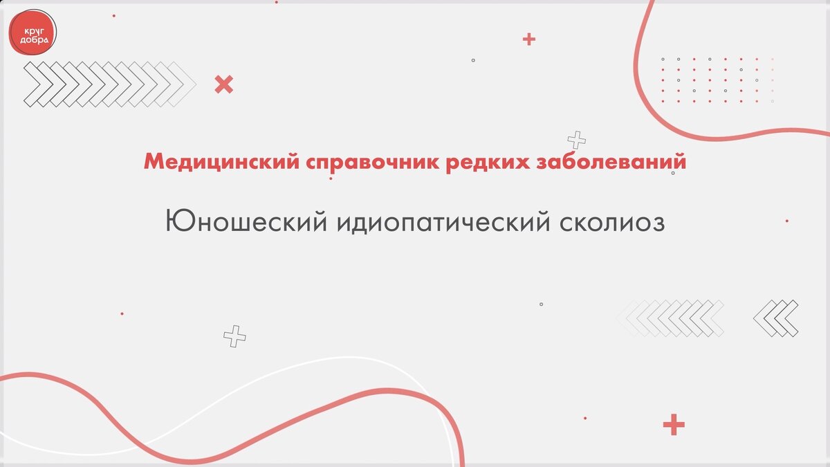 Продолжаем традицию «библиотечный дней» и публикуем новую видеолекцию из Библиотеки орфанных заболеваний Фонда «Круг добра». Сегодня лекция будет посвящена заболеванию Юношеский идиопатический сколиоз. О нем расскажет врач-травматолог-ортопед, врач ультразвуковой диагностики, кандидат медицинских наук, врач высшей врачебной категории, руководитель Амбулаторного Центра консервативного лечения сколиоза «НМИЦ детской травматологии и ортопедии имени Г. И. Турнера» Минздрава России Рыбка Дина Олеговна. Подопечным с этим заболеванием Фонд «Круг добра» помогает в получении медицинской помощи.