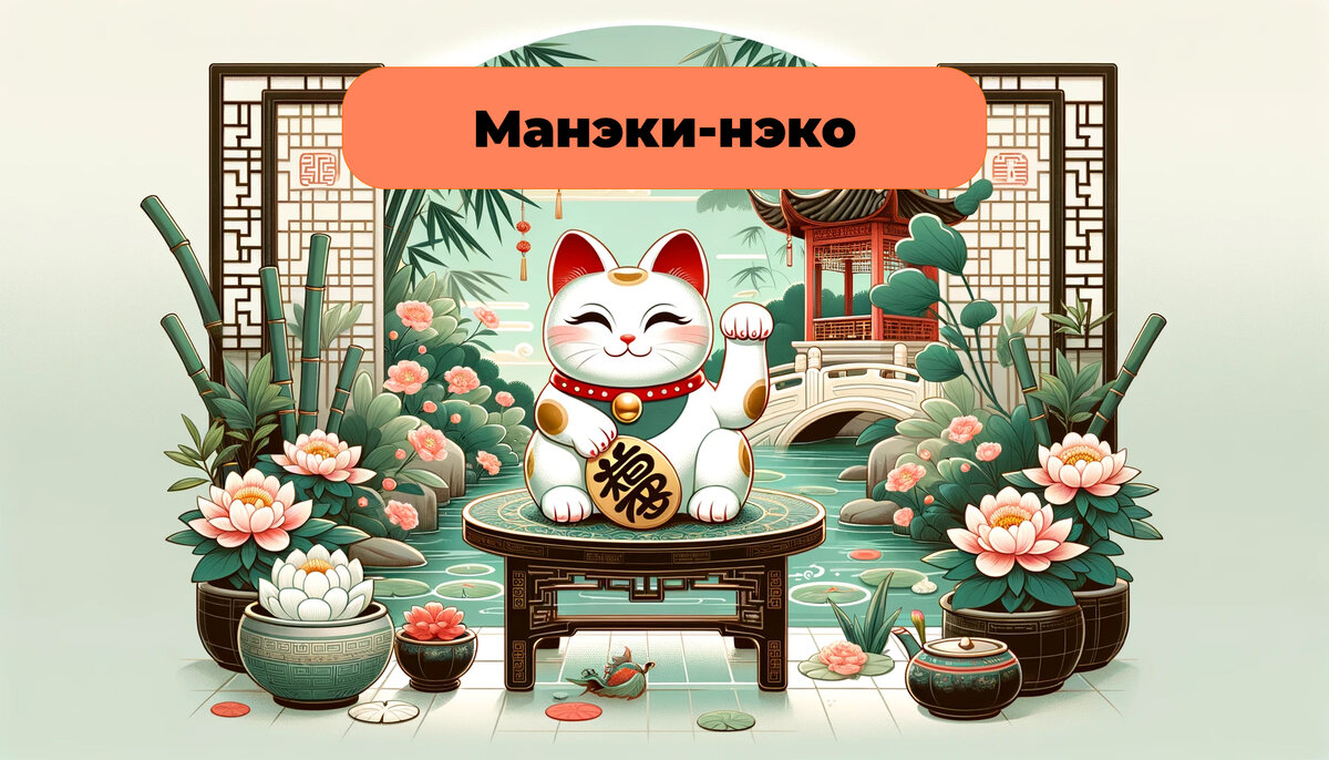 Несмотря на ассоциации этого кота с китайской культурой, Манэки-нэко на самом деле родом из Японии. Со временем Манеки-Неко превратился в символ удачи в разных сферах жизни, от процветания бизнеса до личного благополучия. Легенду о Манэки-нэко часто связывают с храмом Готоку-дзи в Сэтагая (Токио), где кот по имени Тама спас господина от удара молнии, что привело к почитанию кота как символа удачи. На статуэтках Манэки-Нэко часто изображен сидящим с поднятой в манящем жесте лапой и держащим монету кобан, означающую богатство и процветание. В Японии, по сравнению с западными культурами, жест подзыва выполняется иначе: ладонь обращена вниз, а пальцы складываются в повторяющееся движение. В зависимости от того, какая лапа поднята, Манэки-нэко символизирует различные формы удачи: левая лапа привлекает людей (чаще покупают бизнесмены), а правая - богатство и удачу. Не покупайте кошек, у которых подняты обе руки, это привлечет банкротство. Цвет кота тоже имеет значение: счастье (белый), бе