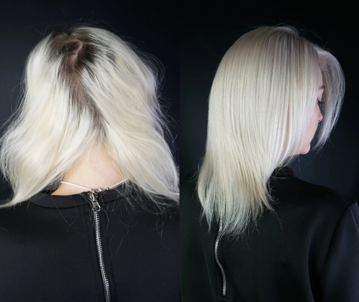 Я специально устраиваю семинар по блондам раз в 2 месяца, а иногда и немножко реже, потому что за это время у постоянных моделей совершенно неприлично отрастают корни. Сделать блонд на идеально ровной базе тоже работа не для новичка, но сделать блонд на сложной базе, на чрезмерно отросших корнях, на косметическом цвете это задачка не из легких. И этому мы на курсе учимся. Типичная ошибка при блондировании слишком длинных корней – использовать следующую комбинацию окислителей – При контакте с кожей 3%, а на отросшей длине корней -6%. Даже не пробуйте, потому что иначе переосветленные корни и желтая полоса, а это не входит в наш план профессионального #блондиньеро. Переросшие корни - проблема, и она возникает достаточно часто, потому что клиенты не соблюдают рекомендованный промежуток между визитами. Что делать, чтобы этого избежать? Разговаривать с клиентами. Объяснять ему, что регулярность визитов – очень важный фактор, гарантирующий ровное осветление. Иначе результат о