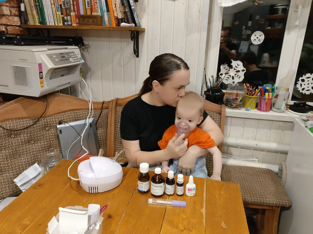 Пара наших детсадовцев, просидев дома всю зиму, вышли в садик. Не отходили и неделю, как заболел Мишка и принёс домой вирусную инфекцию. Вторым заболел Антон (10 лет), затем я (слабое звено). В течение трёх дней слегли все, кроме мужа. Это самое сложное в многодетном родительстве- болеть вместе с детьми. В нашей семье их девять. Гостиная превратилась в лазарет, как в лучших фильмах про эпидемии. Повсюду лежат больные дети, стоят лекарства, стаканы с морсом, лежит одежда для переодевания. Труднее всего, когда единственно здоровый человек уходит на работу в день. Сильнее всех болеют двойняшки, им по полтора годика. Температура, кашель. Сашу возили в детское отделение для оказания первой помощи. Делали снимки, подозревали пневмонию. Рентген показал, что лёгкие чистые, но ребёнок сипит и у неё отдышка. В нашей семье уже вырос астматик- самый старший сын Артём. Благодаря ему, звук астматического выдоха я уже ни с каким другим не перепутаю. Конечно, диагноз бронхиальная астма в таком возраст