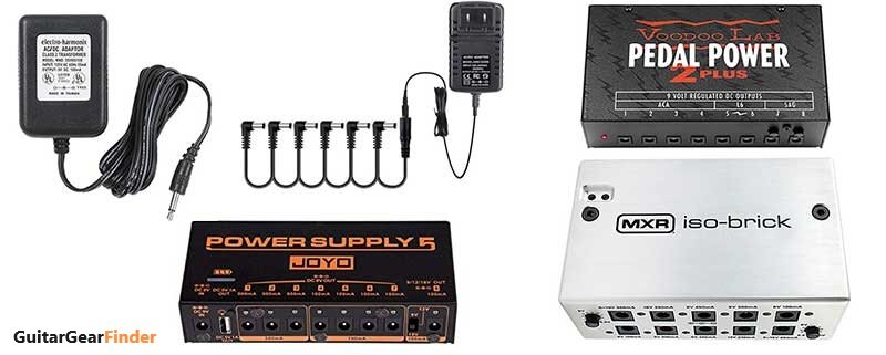 На фотографии ниже показаны различные типы блоков питания, которые можно использовать на гитарных педалях: