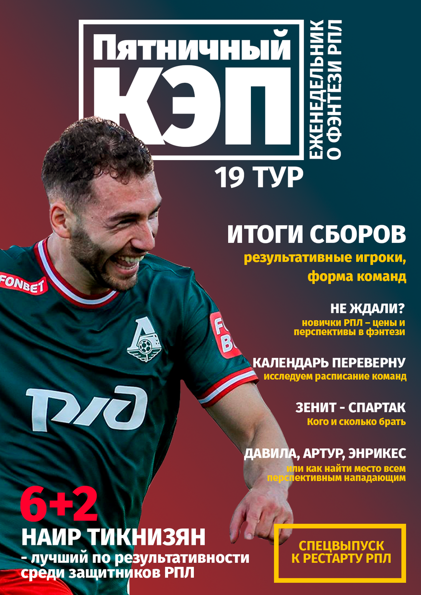 С ума сойти, уже в пятницу возвращается фэнтези РПЛ! Обычно при подготовке к туру мы ориентируемся на матчи предыдущих недель, считаем xG+xA, смотрим котировки букмекеров. Далеко не все из этого списка актуально перед 19-м туром, потому как официальных игр в чемпионате не было больше двух месяцев. Именно поэтому в спецвыпуске мы попробуем кратко, но комплексно подойти к оценке состояния команд и игроков после зимних сборов.