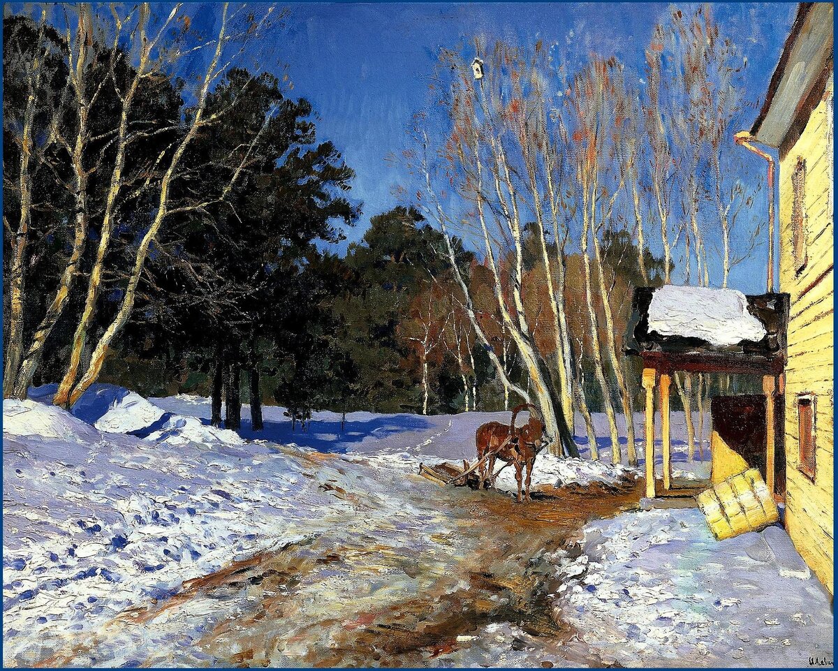 Замечательный русский художник Константин Юон написал картину, которая так и называется «Весеннее небо». А еще есть знаменитые «Грачи прилетели» Саврасова, «Весна. Последний снег» Левитана, «Весенний поток» Грабаря.