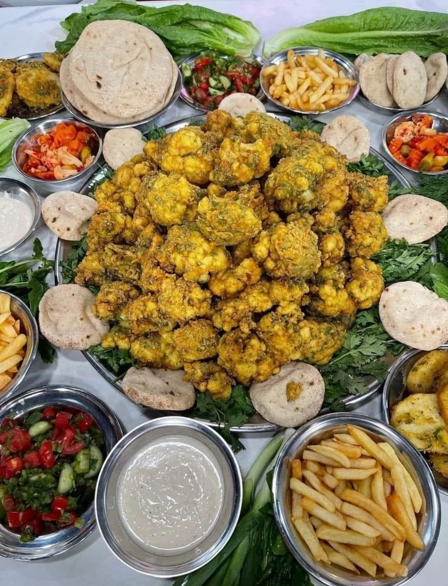 Египетская яичница (эгга), картофельное пюре со специями, баклажаны со специями.