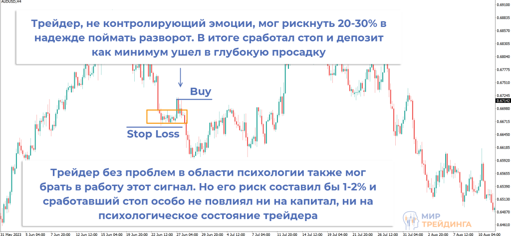 - всегда должен быть определен риск на сделку. Он может отличаться в зависимости от силы сигнала, но должна быть верхняя и нижняя граница. Например, 3% при сильном сигнале с многократным подтверждением точки входа и 1% для обычных сигналов;