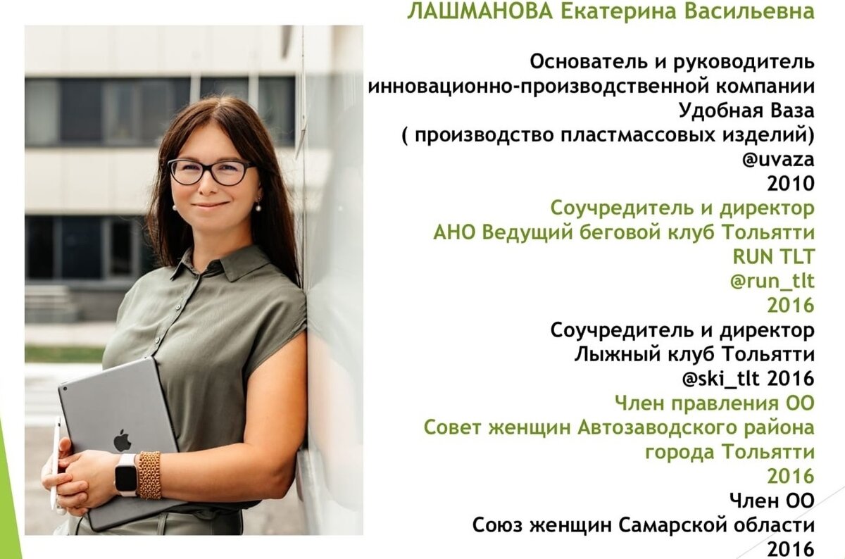 Вы уже знаете, что меня зовут Арина Попова, , я живу и учусь в селе Ягодное, Ставропольского района. Но родилась я в городе Тольятти, как и моя мама. Моя мама - Анастасия Попова училась в школе и в институте вместе с замечательным человеком – Екатериной Васильевной Лашмановой. И сейчас они тоже общаются. Мне очень нравится то, чем занимается Екатерина Васильевна. Это – успешный предприниматель, социальный волонтер, активист, спортсмен и мама двоих детей.