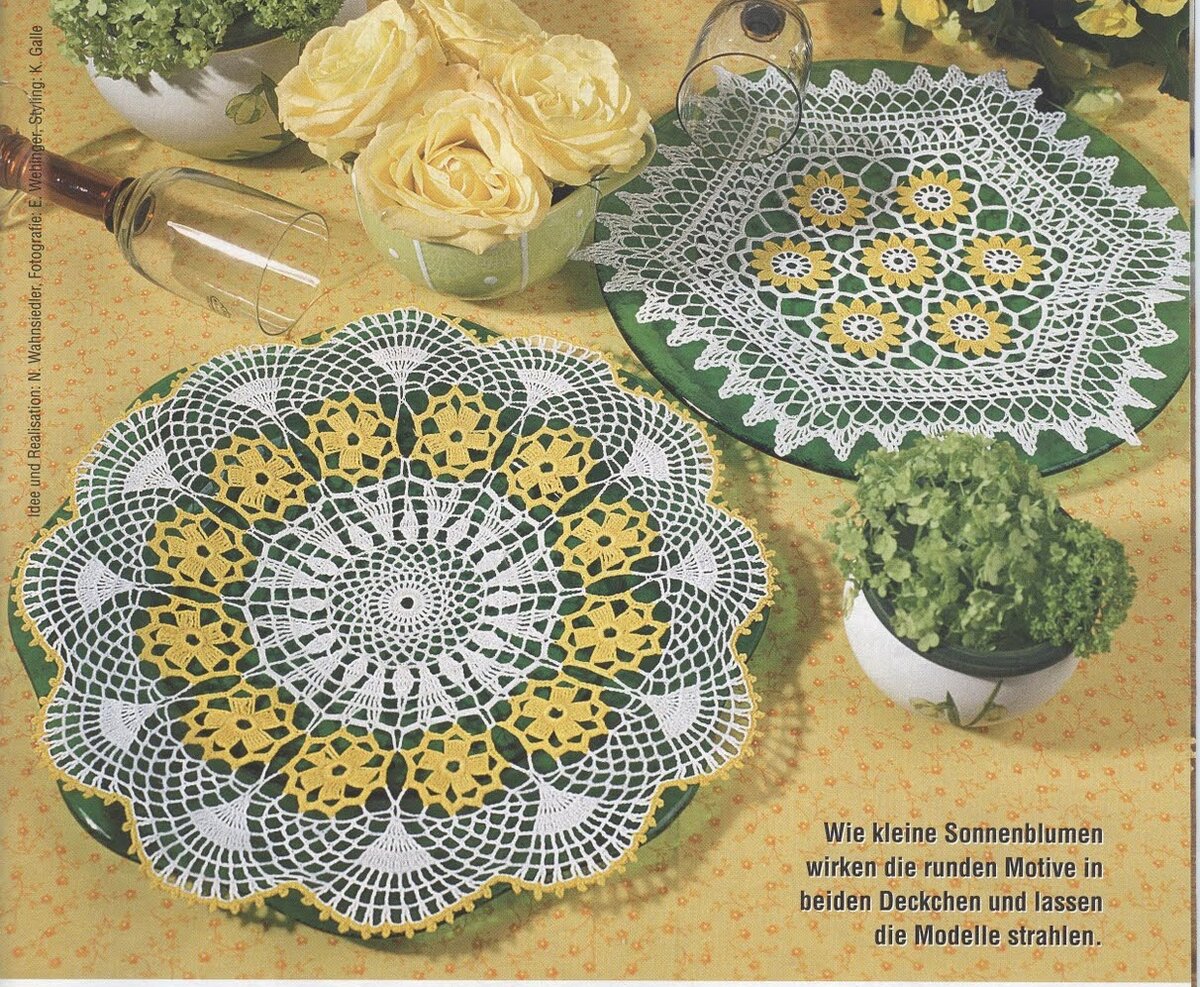 Вот две простые салфетки разной формы с одинаковым узором из мотивов - цветов солнечного цвета.