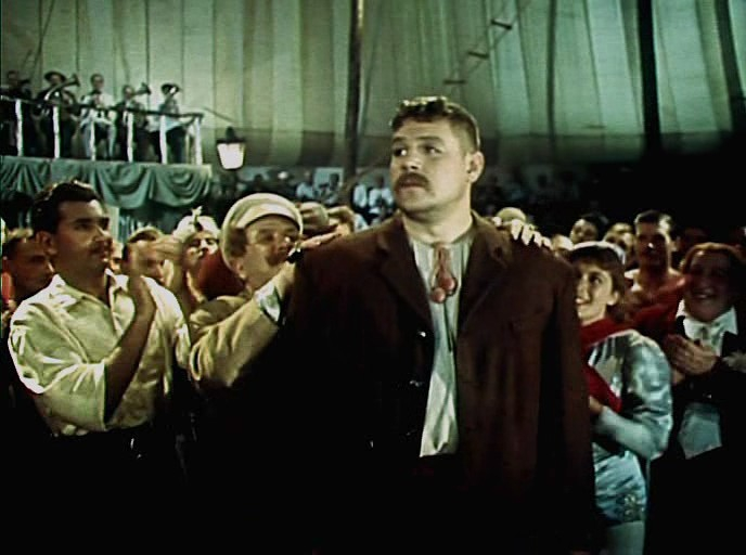 Борец и клоун. СССР, 1957. Режиссеры Константин Юдин и Борис Барнет. Сценарист Николай Погодин. Актеры: Станислав Чекан, Александр Михайлов, Анатолий Соловьёв, Ия Арепина, Георгий Вицин, Кюнна Игнатова, Григорий Абрикосов, Григорий Шпигель и др. 22,1 млн. зрителей за первый год демонстрации.