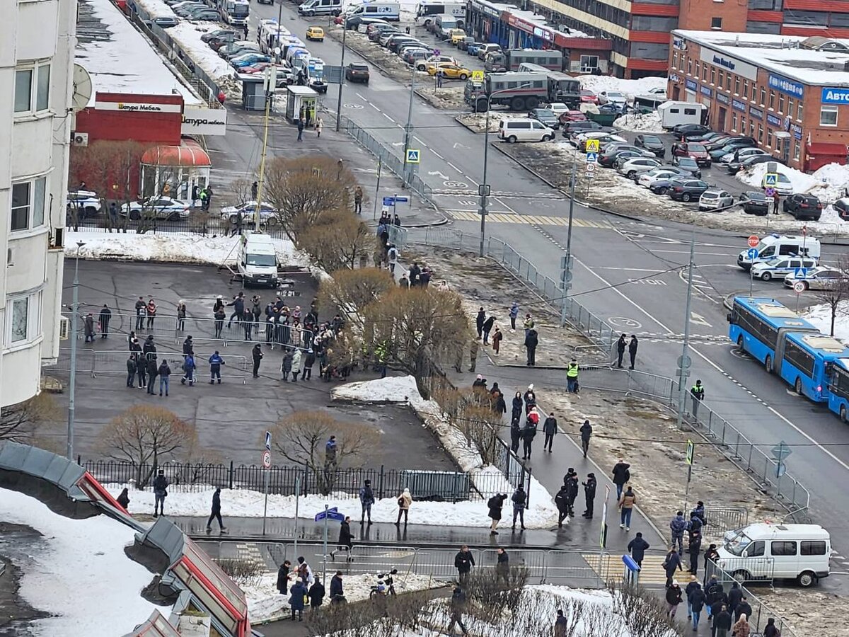 Сегодня в Москве на станции метро Марьино скапливается большое количество людей и полиции из-за отпевания и похорон Алексея Навального.У Храма иконы Божией Матери «Утоли моя печали» усиление. На улице Люблинской полицейские автомобили, сотрудники ДПС и военные: «В Марьино за 5 часов до отпевания уже выставлены посты и оцепления повсюду возле церкви», - приводит слова очевидцев медиа Ксении Собчак. Сегодня в храме состоится отпевание Алексея Навального, похоронен он будет на Борисовском кладбище. (https://www.newsefir.net) Силовики на обоих берегах Москвы-реки проверяют документы и личные вещи прохожих. На 10:30 в районе храме интернет работает, однако сообщения в телеграме отправляются несколько минут, а «Яндекс. Карты» не находят соединение, передают журналисты. Алексей Навальный признан Минюстом России физическим лицом, выполняющим функции иноагента; включён в перечень организаций и физлиц, причастных к терроризму и экстремистской деятельности.