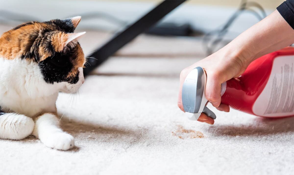 Не опускайте рук. Все «художества» питомца тщательно затирайте, замывайте или застирывайте. Пользуйтесь ферментными очистителями, они наиболее эффективны. В противном случае запах, если с ним не бороться, начнет привлекать кошку делать свои дела на определенном месте еще и еще. Чувствуете, что победить запах не удается, он впитался намертво – ковер, даже очень дорогой, придется выбросить.