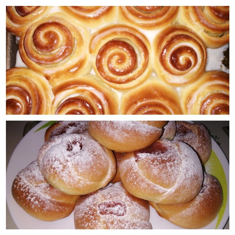 Как приятно всей семьёй устроить чаепитие с двумя видами булочек, приготовленными из вкусного сдобного теста!