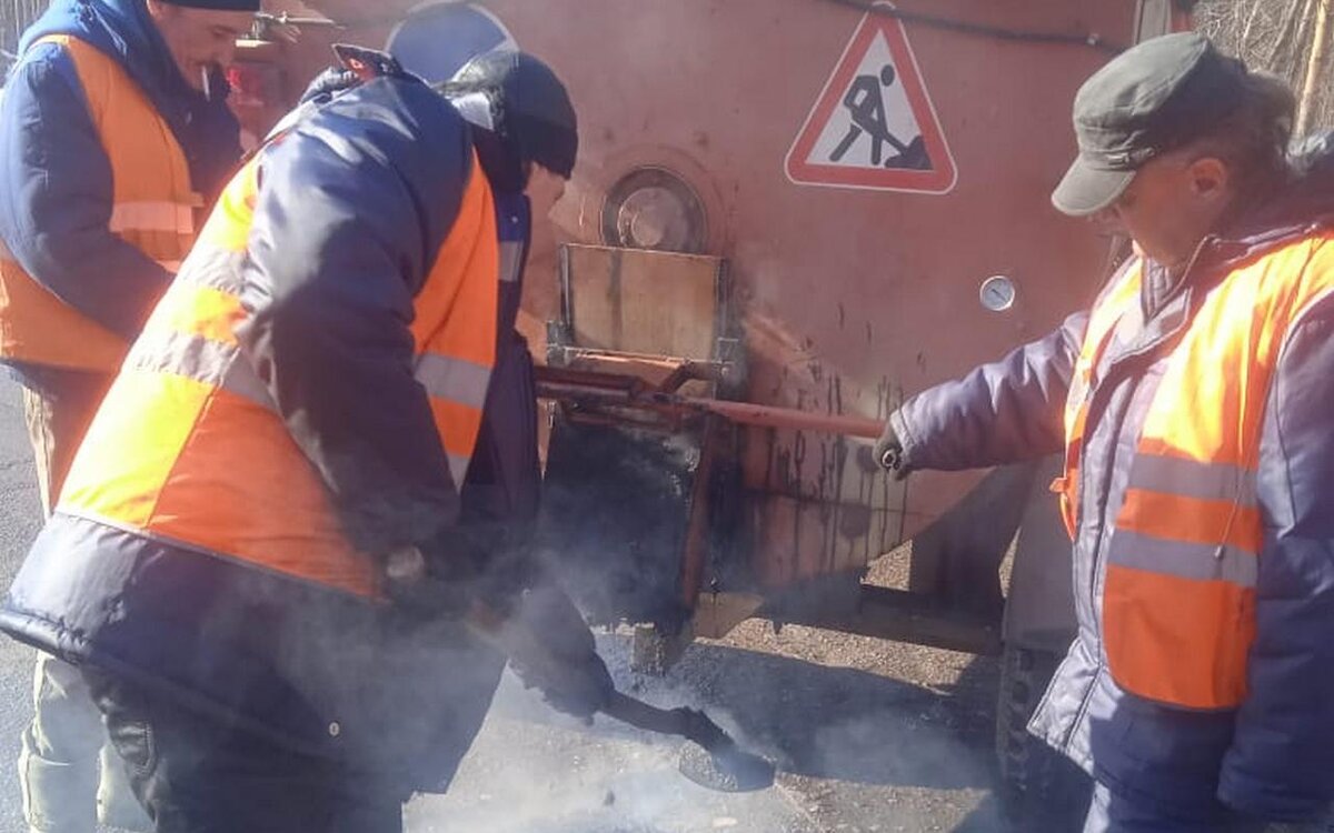 В Железнодорожном районе продолжаются работы по ремонту дорожного покрытия литым асфальтом