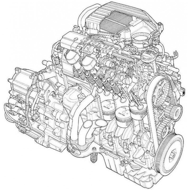 Базовый мотор – это инжекторный 16-ти клапанный двс, с рядным расположением цилиндров. Новая модель двигателя отличается от предшественников более прочным составом сплава алюминия, из которого состоит блок цилиндров. Высота корпуса составляет 212 мм. В верхней части располагается гбц, в которой произошла модернизация камер сгорания и каналов подачи воздуха. В её корпусе располагаются выточенные постели под распределительный вал и направляющие клапанов. Впускной коллектор состоит из пластика, а в выхлопной системе стоит принципиально новый катализатор.