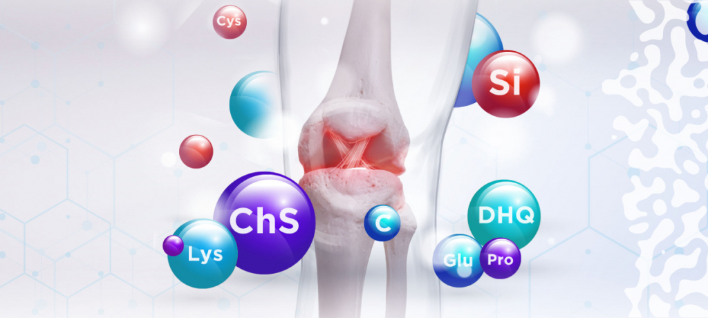 Коллаген — это белок, который составляет основную часть суставного хряща. Он отвечает за его прочность и структурную целостность. Особенно важен для хрящевой ткани тип II коллагена, так как он формирует волокнистую сеть, удерживающую хондроитин и глюкозамин.