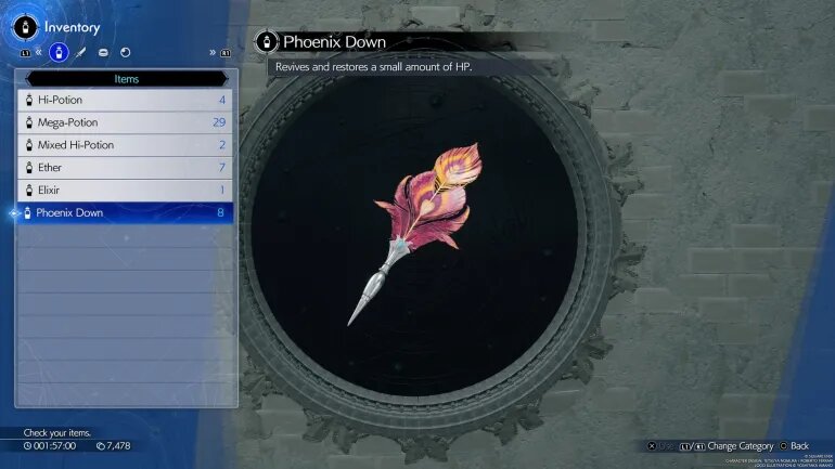 Как оживить свою группу в Final Fantasy 7 Rebirth В Final Fantasy 7 Rebirth вы встретите самые разные предметы, одним из самых важных из которых является «Пух Феникса», важнейший предмет, способный оживить членов группы в игре. Помимо оживления ключевых членов вашей группы, если они погибнут во время боевых схваток, «Пух Феникса» дает небольшое количество HP. Этого достаточно, чтобы вернуть ваших партнеров в бой. Вам захочется подлечиться дальше после использования предмета возрождения в Final Fantasy 7 Rebirth. Используйте Исцеляющую Материю, Высокое Зелье или Мега-Зелье, чтобы ваша группа оставалась на ногах и вела достойную битву! Где взять Пух Феникса в Final Fantasy 7 Rebirth Как и большинство других лечебных предметов в Final Fantasy 7 Rebirth, вы можете получить «Пух Феникса» несколькими способами: Однако всегда разумно иметь постоянный запас.