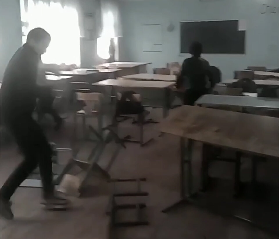 На видео группа учеников пинает и переворачивает столы и стулья, затем начинает их ломать. Все это делается с улыбкой и под улюлюканье. Что в голове у этих школьников, которые уже совсем скоро начнут самостоятельную взрослую жизнь? Честно говоря, становится немного страшно за наше общее будущее…