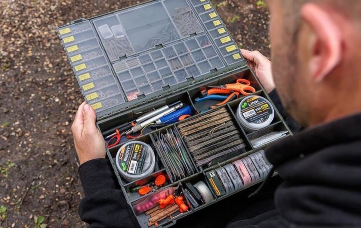 Коробка для снастей стала венцом всей линейки тэкла FOX EDGES. Расположение отделов придумывалось исходя из коробок и аксессуаров одноименной линейки. В ряду всего две модели: обычная и версия, включающаяся в себя уже дополнительные коробочки и мотовила для ледкоров. Даже несмотря на то, что это большая, вместительная коробка с 49 отсеками только в верхней части, у нее довольно малая высота, которая составляет всего семь сантиметров. Полные габариты: 35х25х7см. FOX много внимания уделили материалам, сделав все защелки и шарнирные петли из материалов высочайшего качества. Тэкл-бокс получился очень крепким, это сразу заметно, как только берешь коробку в руки. Цвет «мокрый асфальт», тонировка крышек, которая все равно позволяет определить, что именно находится внутри каждого отсека. Все сделано изящно, стильно и сама коробка очень приятная на ощупь. Внутри и снаружи размещена линейка для измерения длины поводков. В отличие от коробок предыдущих поколений, вы можете зафиксировать крышку по
