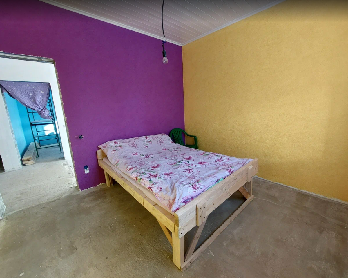 Жидкий обои высохли! Тщательно отскребла от пола всё что там лишнее налипло: шпатлёвка, краска, жидкие обои. Подмела, то ещё удовольствие мести бетон, конечно предварительно побрызгала, чтобы не очень сильно пылила, но это мало помогло. Вот брат купил строительный пылесос, молодец, давал мне на время, но пришлось вернуть. Чтобы стяжка не пылила, покрыла её пропиткой "мокрый камень", которую мне принёс с работы Никита, осталась у них, после "обеспыливания" склада. Отмыла подоконник и окна, правда снаружи не до всех частей дотянулась - руки коротки) Летом придётся домывать с лестницы. Кровать у меня пока самодельная, из досок толщиной 50 мм, её ещё летом сколотил прораб. Я её даже просто двигаю с трудом. Надо было найти, кто же мне её перенесёт из одной комнаты в другую. Уже чесались руки начать отделку своей спальни, надоело смотреть на штукатурку, хочется, чтобы глаз радовался. Нежно сиреневые обои ждут! Выглянула в окно и увидела, что недалеко двое рабочих чистят перекрытие строящегос