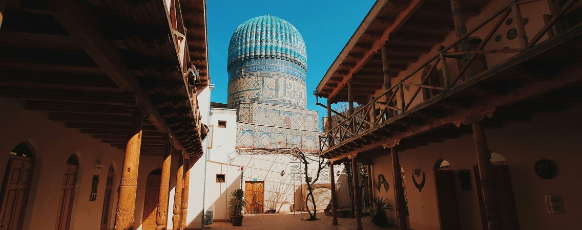 От памятника Амиру Темуру логичнее всего отправиться к его же усыпальнице. Изначально мавзолей Гур-Эмир возводили для его внука, который ушёл из жизни раньше своего деда. Сам Темур скончался в 1405 году. Мавзолей тогда ещё не достроили, поэтому положили тело в ханаку — так на востоке называются помещения, где размещают важных гостей. Со временем комплекс превратился в усыпальницу Темуридов, здесь лежат сыновья Темура и его внук Улугбек. После того как прогуляетесь по территории мавзолея, выйдите через задние ворота, чтобы посмотреть, как живёт настоящий Самарканд. Там вас ждут белоснежные одноэтажные дома, маленькие лавки и расписные двери.
