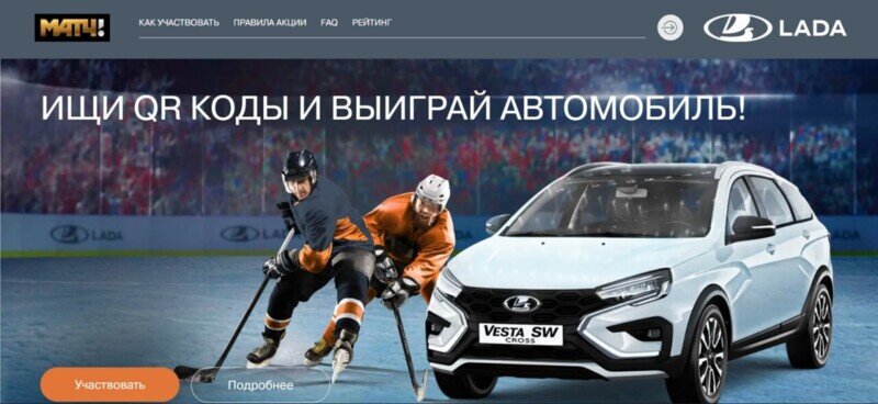 ERID| 2SDnjcchALY Бренд LADA второй сезон подряд выступает официальным партнером Континентальной хоккейной лиги. Для поклонников этого захватывающего вида спорта с 1 марта по 21 апреля 2024 года пройдет интерактивный розыгрыш автомобиля LADA VESTA SW CROSS. Главным коммуникационным партнером LADA выступит канал МАТЧ ТВ. В интерактивной игре-розыгрыше всем любителям хоккея будет предложено проявить внимательность и целеустремленность, чтобы в итоге стать обладателем автомобиля. От участников потребуется зарегистрироваться на сайте lada.matchtv.ru и собирать QR-коды, загружать их в свой личный кабинет и дождаться результатов. QR-коды будут интегрированы в прямые трансляции матчей Континентальной Хоккейной Лиги и программу «Все на матч» в формате эксклюзивной рубрики LADA, на сайте matchtv.ru, в соцсетях и диджитал пространствах МАТЧ, а также размещены в POSM-материалах в дилерских центрах LADA по всей стране. Отсканировав QR-код, пользователь будет попадать на страницу с уникальным кодом