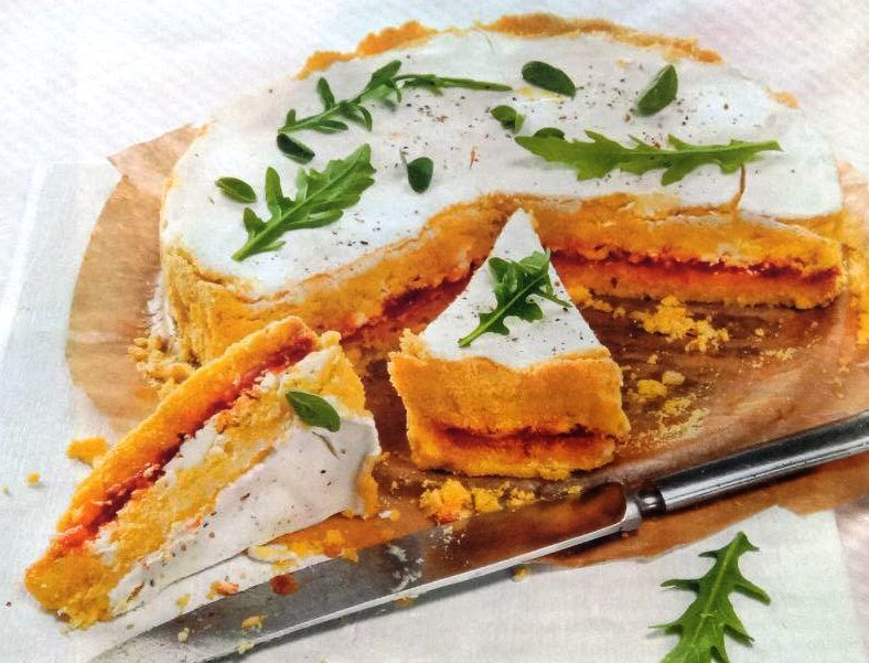 Насыпной пирог из кукурузной муки с беконом, томатным соусом и сыром моцарелла