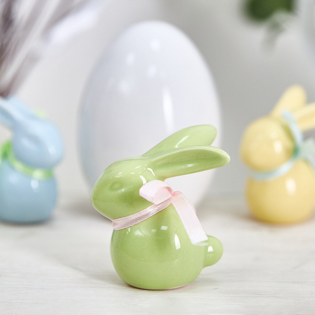 Керамические зайчики в стиле минимализма смотрятся классно. Особенно тот, что мятного цвета. Размеры небольшие. Разные магазины - разные цены.