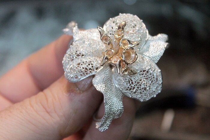 Работа над лилией завершена. Не самая сложная работа, но и не из простых. Кого-то результат разочарует, кого-то повеселит, а кого-то, я надеюсь, порадует. Все как обычно. Мне были приятны ваша оценка и ваши комментарии. В дальнейшем, я буду периодически возвращаться к такому формату. Удачи! Кольцо-фиксатор на платок "Лилия". Серебро, золото, аметисты, гранат. Вот что получилось. После обсуждения с клиентом было решено, как и планировалось в начале, сделать лилию темной, с аметистами и гранатом. Изнанка. Закрепляю камни. Чтобы не раздавить работу фиксирую рабочую зону термопастой. Последние штрихи к портрету... С чего все начиналось... И вот что получилось. Автор и ювелир - Дмитрий Кузнецов, г. Новосибирск. Пост автора solyarisart. Комментарии к посту на сайте Пикабу.