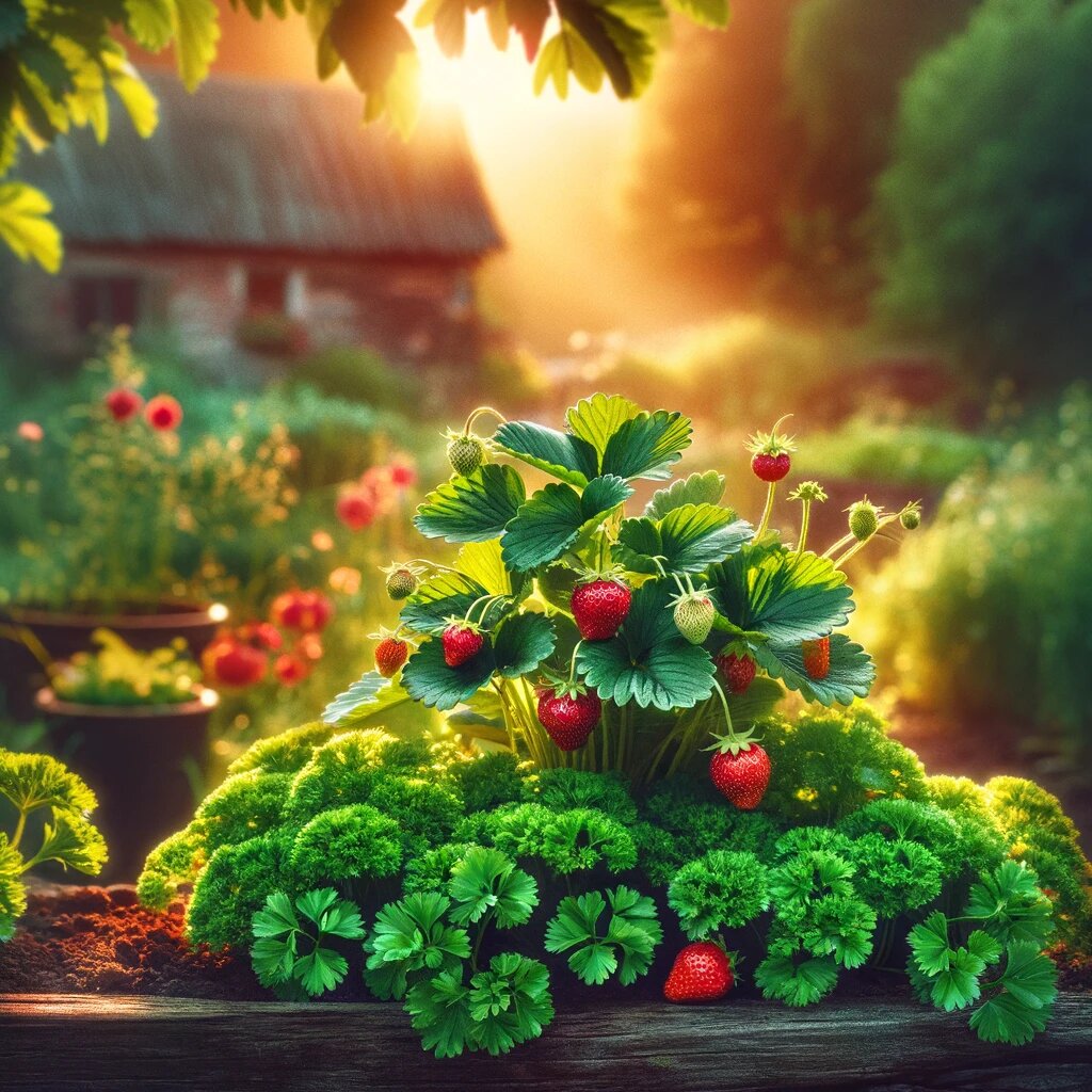 Привет, сосед по даче! Сегодня я поделюсь с тобой секретиком, который перевернет твое представление об огородничестве. Петрушка и клубника вместе? Да, и вот почему. Почему петрушка и клубника должны расти вместе? Соседство с выгодой Ты когда-нибудь задумывался, почему некоторые растения в саду чувствуют себя лучше, когда рядом определенные «соседи»? 🌱🍓 Петрушка и клубника - именно такой случай. Это не магия, а результаты многолетних наблюдений садоводов. Улучшение вкуса и урожайности Заметил ли ты, что клубника становится сладкой, как конфета, когда рядом растет петрушка? Это не совпадение. Петрушка способствует улучшению вкусовых качеств клубники, делая каждую ягодку более ароматной и сладкой. А кто из нас откажется от более сладкой клубники? Петрушка, будучи сильным ароматическим травянистым растением, способствует улучшению вкусовых качеств своего соседа. Это происходит за счет отпугивания некоторых вредителей, которые могут негативно сказываться на развитии и вкусе клубники, а та