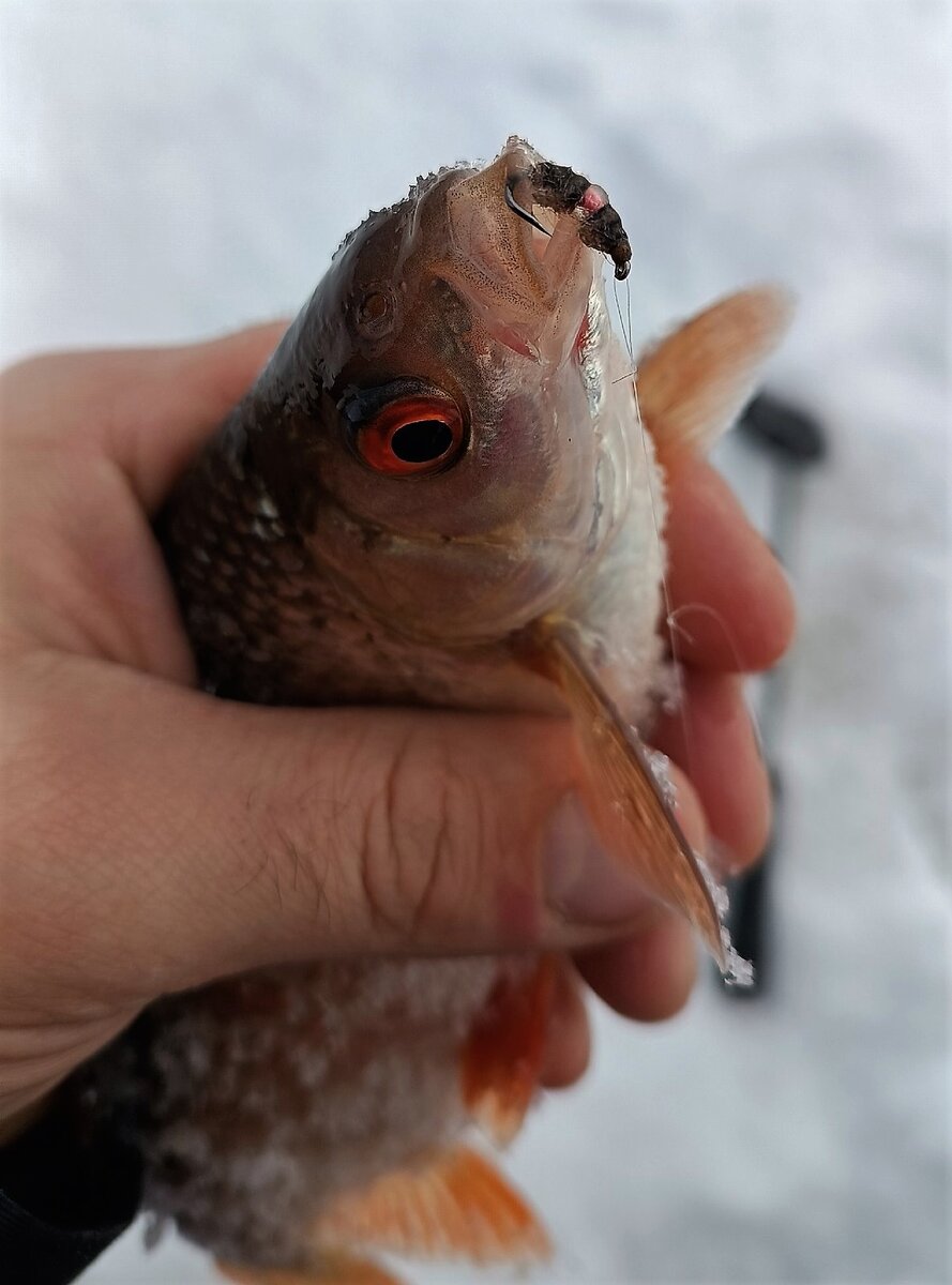 Всем привет друзья 🤟 Сегодня сгоняли дружной компанией (Ваня, Макс, Саня, Виталя и я) на Рефтинское вдхр. В район 4 речки. В поисках чебака. И на этот раз все карты были нам в руки 🔥 Отличная погода, хорошо подобранные снасти, правильно подобранная проводка и огромная капля везения! На чебака попали почти сразу. Но до обеда клевал не особо активно, по 1-2шт, да и то не в каждой лунке. А вот после обеда тумблер клëва выкрутили на максимум и пошла жара. В прямом и переносном смысле. Сверху нас жарило солнышко, а снизу Чиба задавал жару. Ловил исключительно на безнасадку. В топе тандемы: кобра с кошачим глазом и перламутровый гвоздешарик , но самый топ это сырный гвоздешарик в тандеме с мухомормышем от Алтайского мастера Сергея Рознина. 90% пойманной рыбы, было поймано на этот мухомормыш🦐. Мушки просто огонь! 🔥 Мало того, что выглядят очень реалистично, дак они до безумия уловистые🎣 кормили в дно, мормыш+сухарь. В прилове: хорошего размера чебак, подлещик, микро окуни и микро судачки