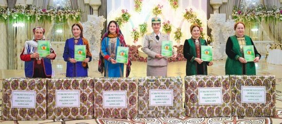 Было подчёркнуто, что за особые заслуги в реализации национальных программ, успехи в труде и общественной жизни, в деле воспитания преданного суверенной Отчизне здорового и воодушевлённого поколения лучшие из лучших женщин удостаиваются высокой государственной награды – ордена «Zenan kalby». А по случаю Международного женского дня ежегодно многодетным матерям, родившим и воспитавшим восемь и более детей, присваивается почётное звание «Ene mähri». Всё это свидетельствует о внимании и заботе, которое проявляют государство, уважаемый Президент Сердар Бердымухамедов и Национальный Лидер туркменского народа Гурбангулы Бердымухамедов к женщинам.
