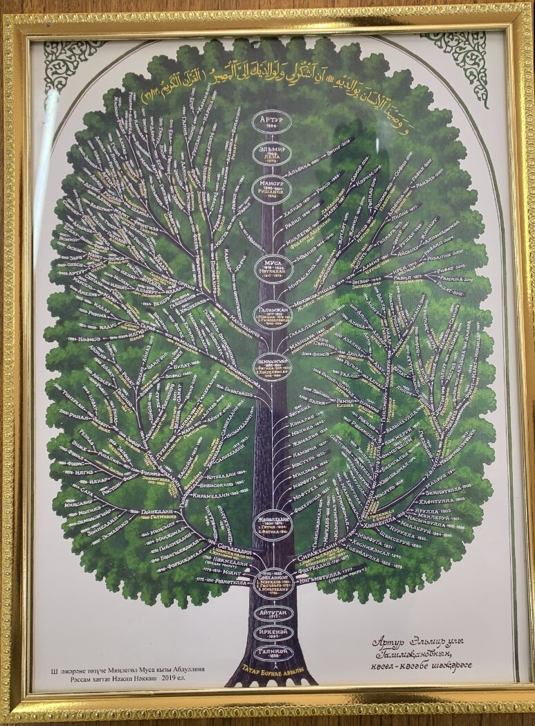 Ей удалось проследить историю 12 поколений рода, до 1658 года. На фото — генеалогическое древо семьи по линии отца. Есть такое же по материнской линии. Миннегуль Мусиновна параллельно составила родословные для жителей родной деревни в Алькеевском районе. Теперь планирует написать книгу об истории поселения.