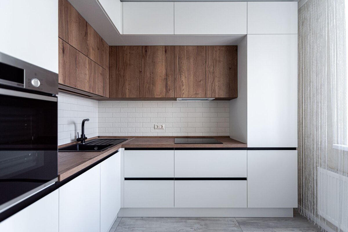 1. Кухонный гарнитур нужно продумать еще на стадии черновой отделки, что бы учесть все нюансы в виде розеток, стыков и углов.